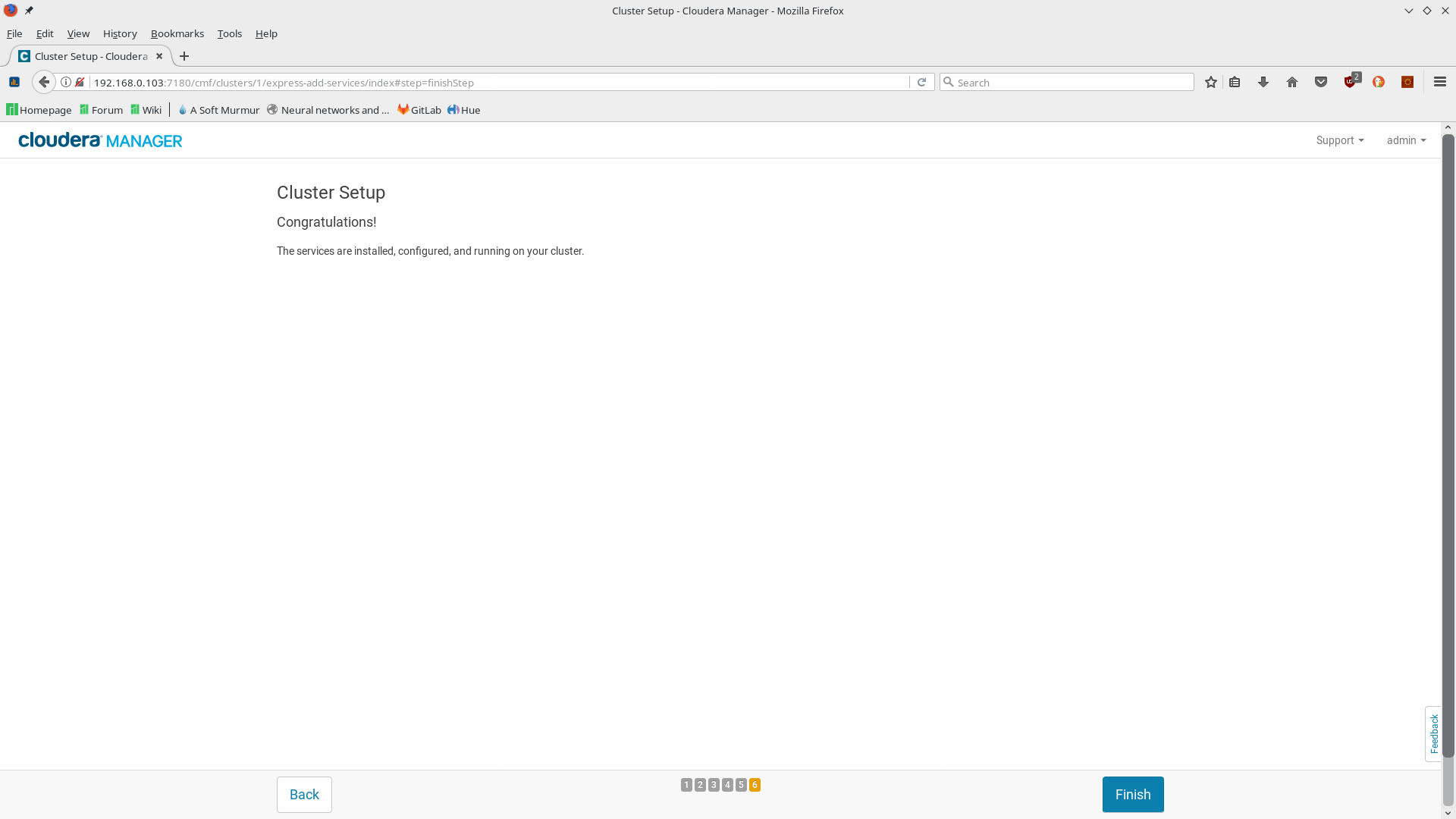 Aparecerá el panel de administración de Cloudera Manager:
